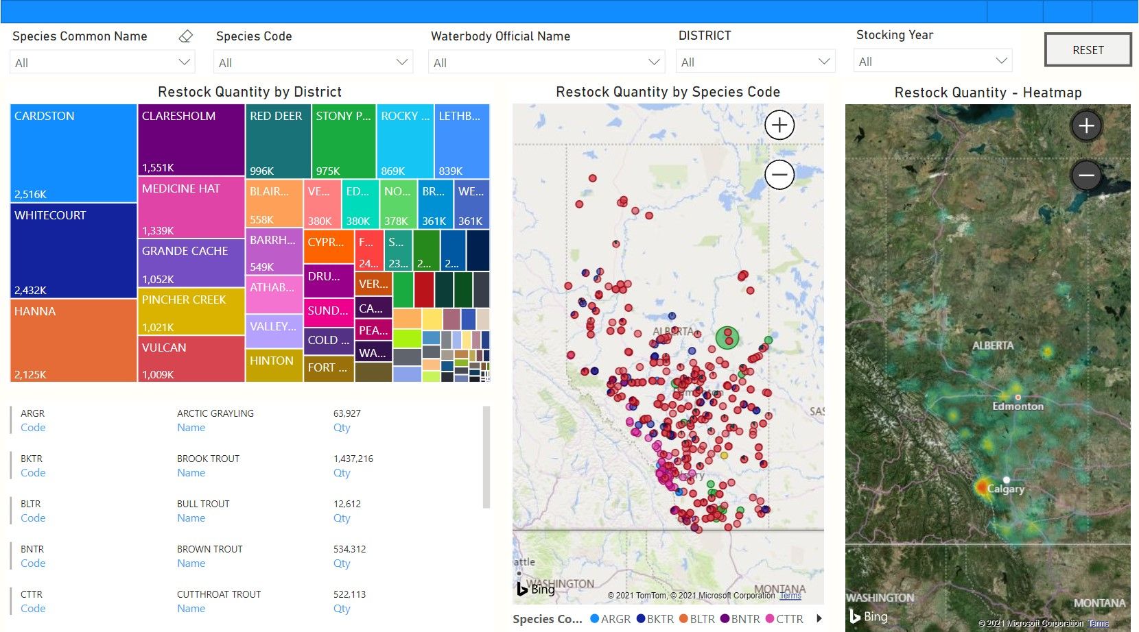 Fish Restocking Model, MS Power BI